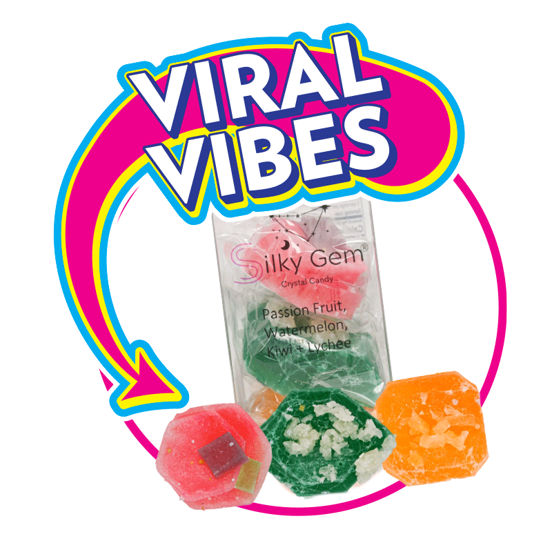 Craving the candy you’ve been seeing all over your FYP? Meet the Silky Gem Crystal Candy Signature Tropical Trio. This stunning treat isn’t just eye candy (literally) — it’s a tropical medley bursting with Passion Fruit, Kiwi, and Watermelon flavors. Crunch, sparkle, and pure viral energy.