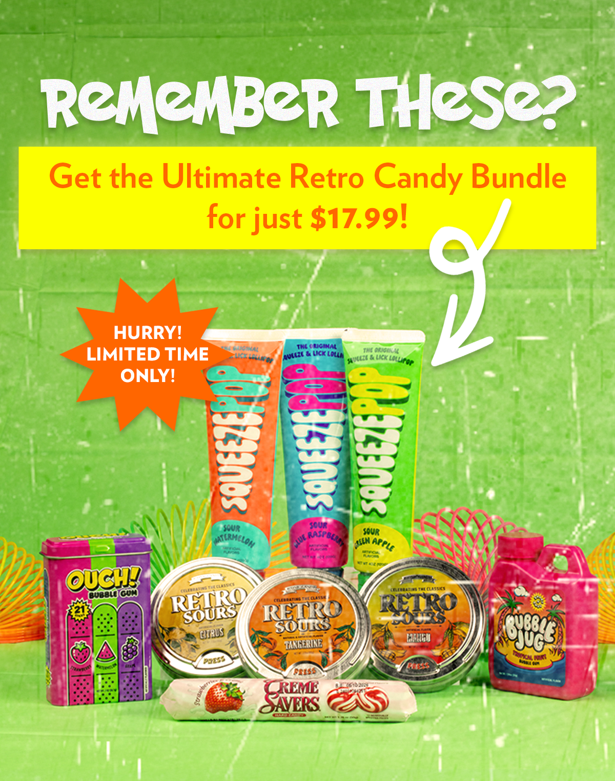Take a sweet trip down memory lane with our Ultimate Throwback Candy Bundle, packed with nostalgic favorites that bring back all the fun! This customizable bundle lets you choose one flavor of each classic treat, so you get exactly what you love.