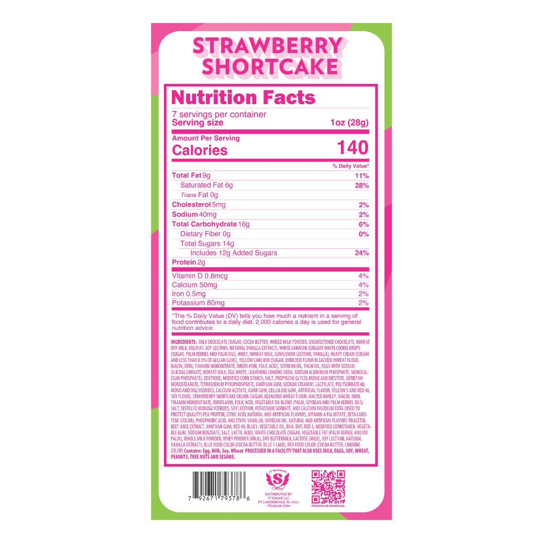 Get ready for a flavor-packed treat with the IT’SUGAR Strawberry Shortcake Milk Chocolate Bar — a 7oz bar of creamy milk chocolate infused with cake and strawberry crunchies, with a white chocolate ganache. Every bite is like a little celebration of berries, cake, and chocolate magic!