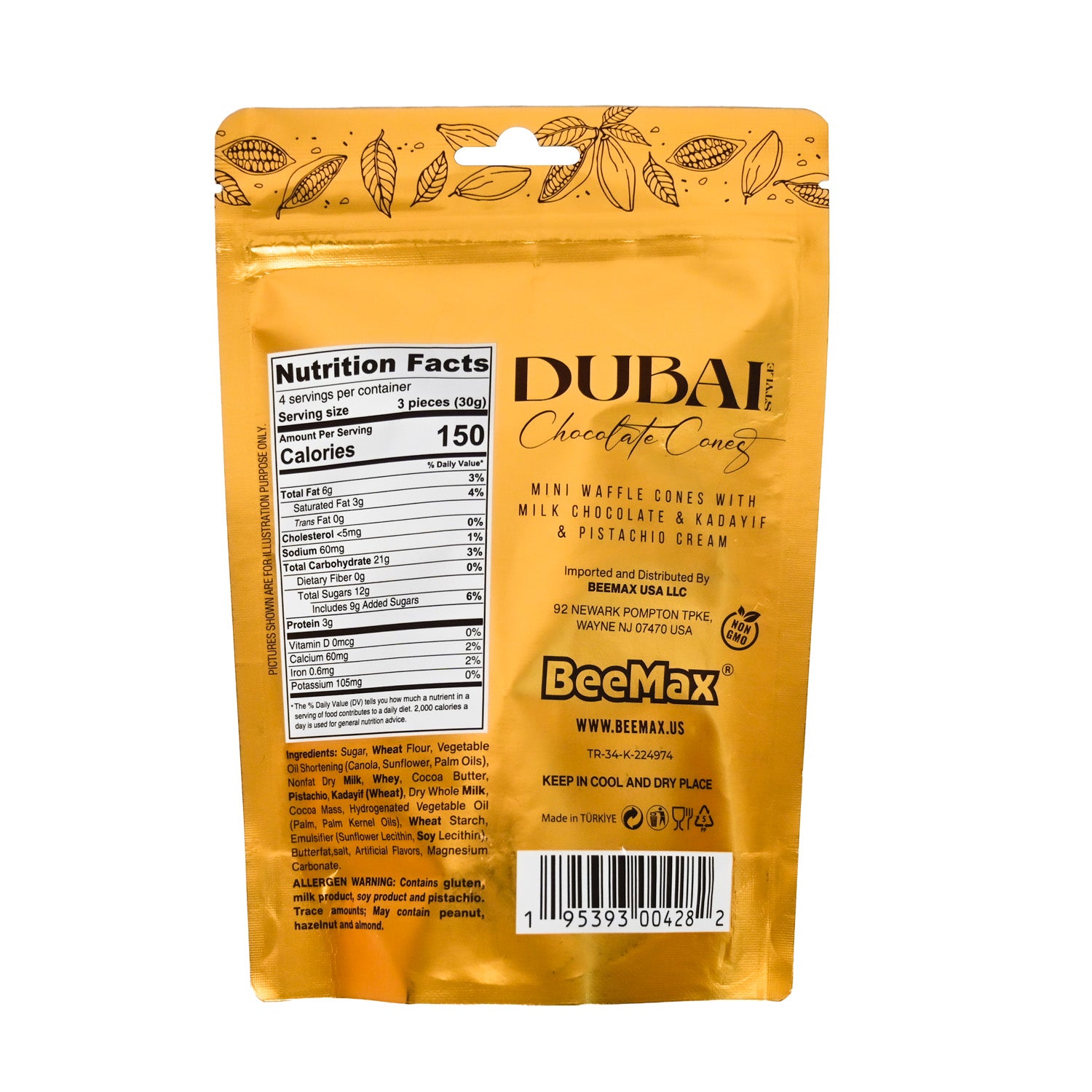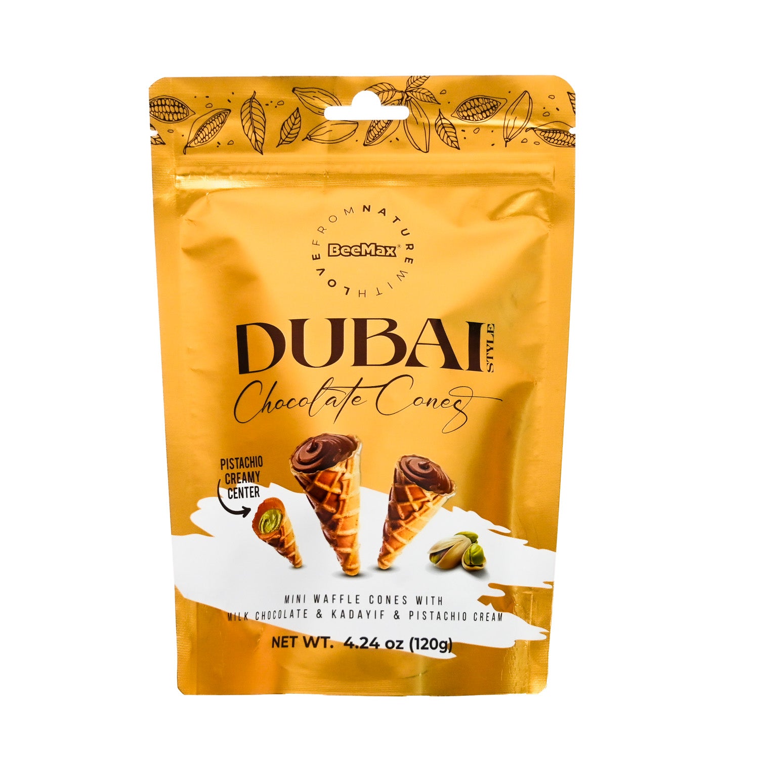 Treat yourself to the rich, luxurious taste of Dubai Chocolate Cones – a perfect fusion of smooth chocolate and crispy cone crunch, packed into a convenient 4.2oz bag. Whether you’re looking for a sweet snack on the go or a charming addition to your dessert table, these bite-sized treats deliver flavor and fun in every bite.